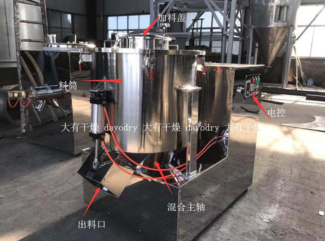 该机对较细的粉粒,凝块后或二种以上的粉状体,含有一定水份的物料均能混合。如对微量物相和的添加物也可达到混和效果(指添加量很少的配料混和)。